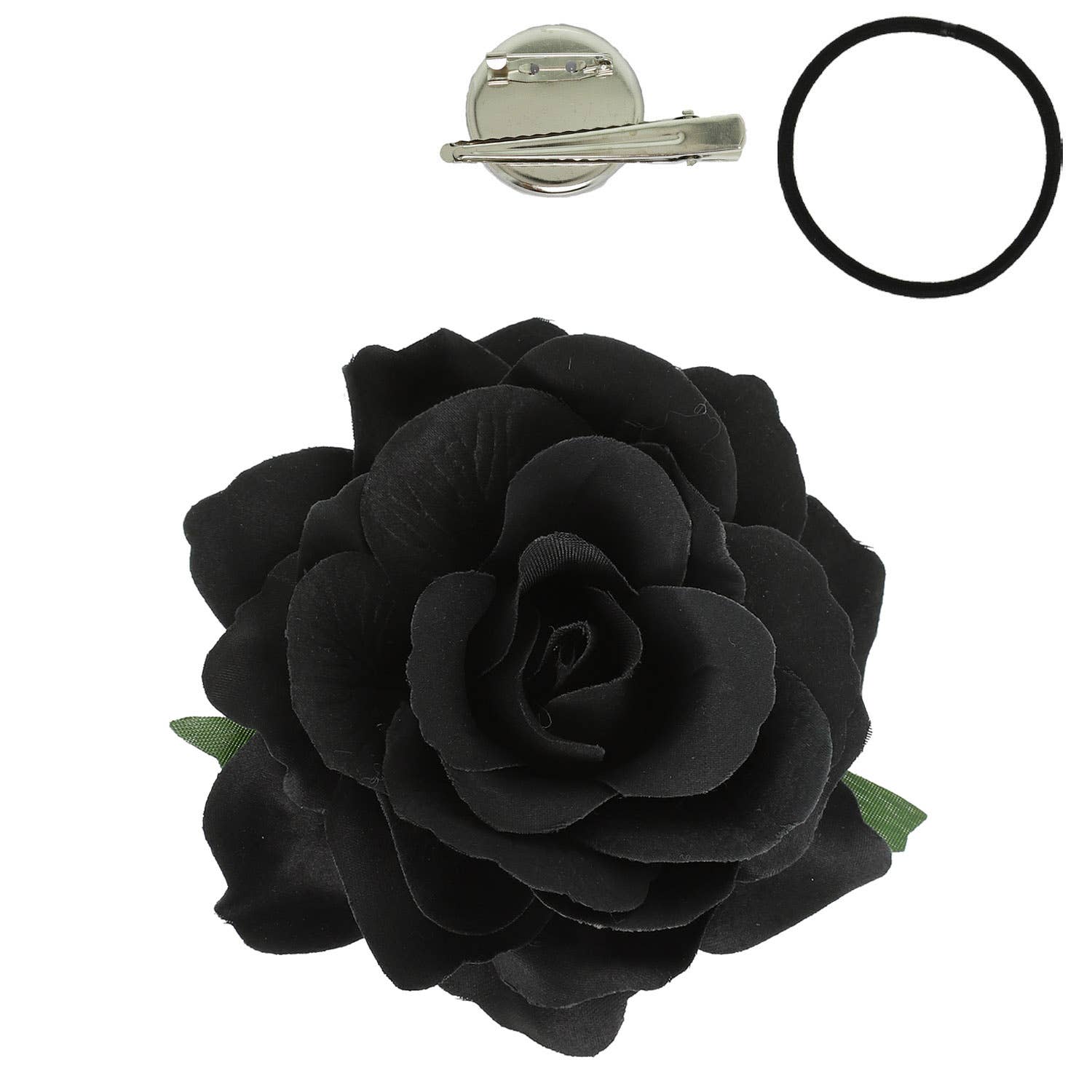 Rose Flower Brooch and Hair Clip Tie Accessory: Black